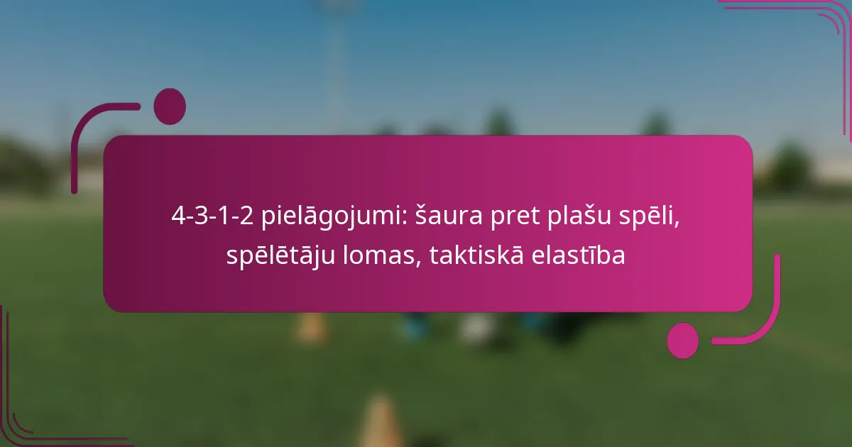 4-3-1-2 formācija ļauj ievērojamu taktisku elastību, īpaši caur šaurās un plašās spēles pielāgojumiem. Šie pielāgojumi var uzlabot komandas uzbrukuma iespējas un aizsardzības stabilitāti, efektīvi izmantojot brīvo telpu laukumā.